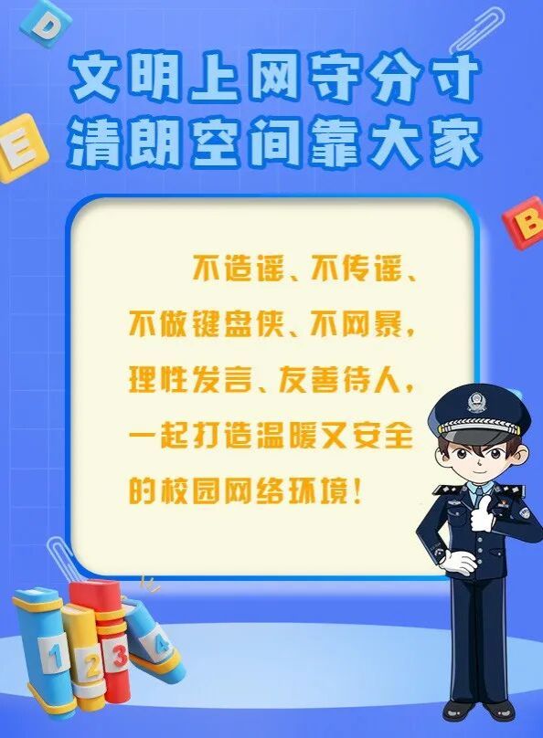 新学期、新守护。愿每一位同学都能提高网络安全意识、学会自我保护、在安全清朗的网络空间里、安心学习、快乐成长。