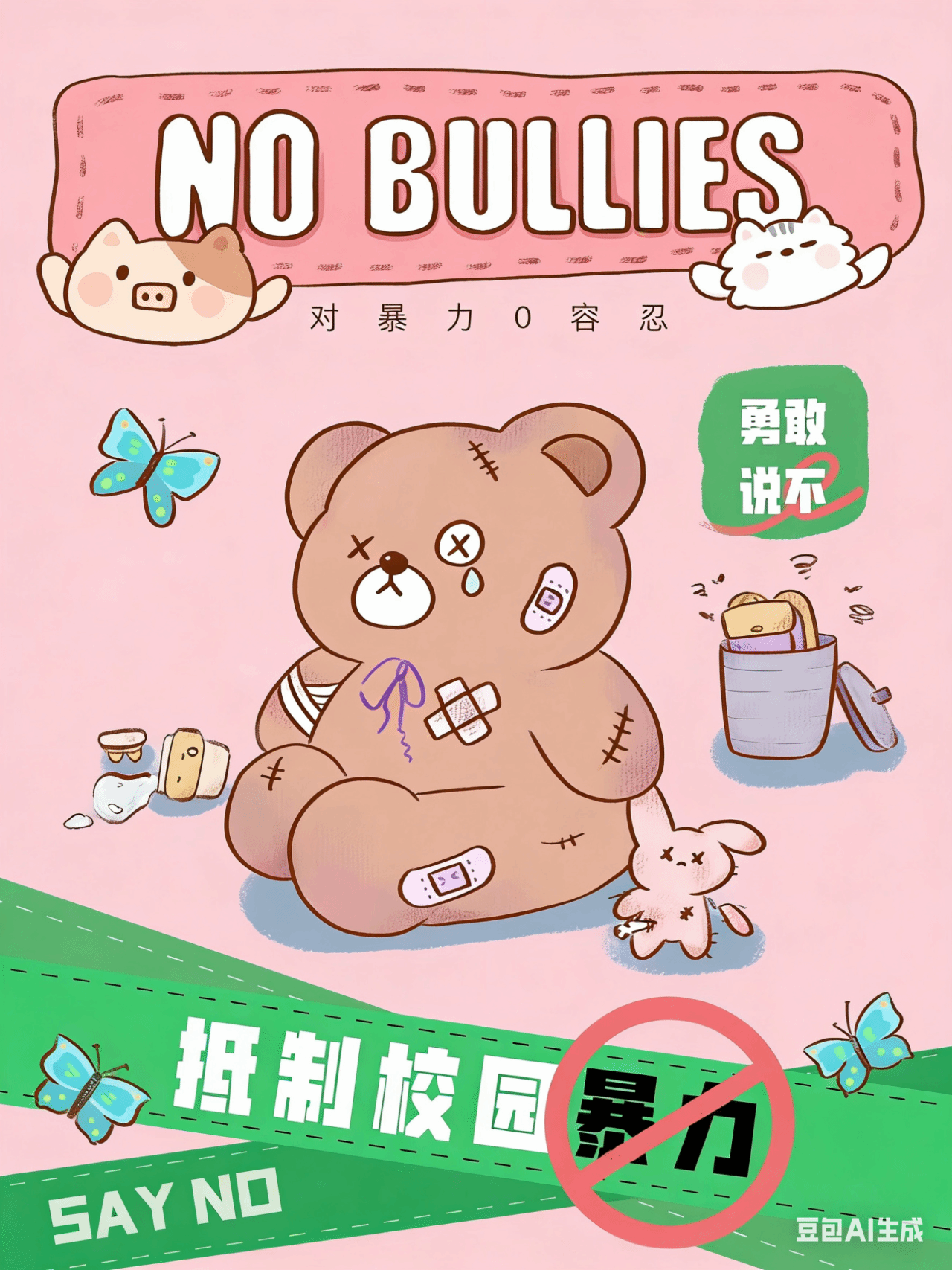 看到校园霸凌时,不围观、不参与、不纵容,及时向学校或老师报告,避免霸凌升级,做正义的守护者。