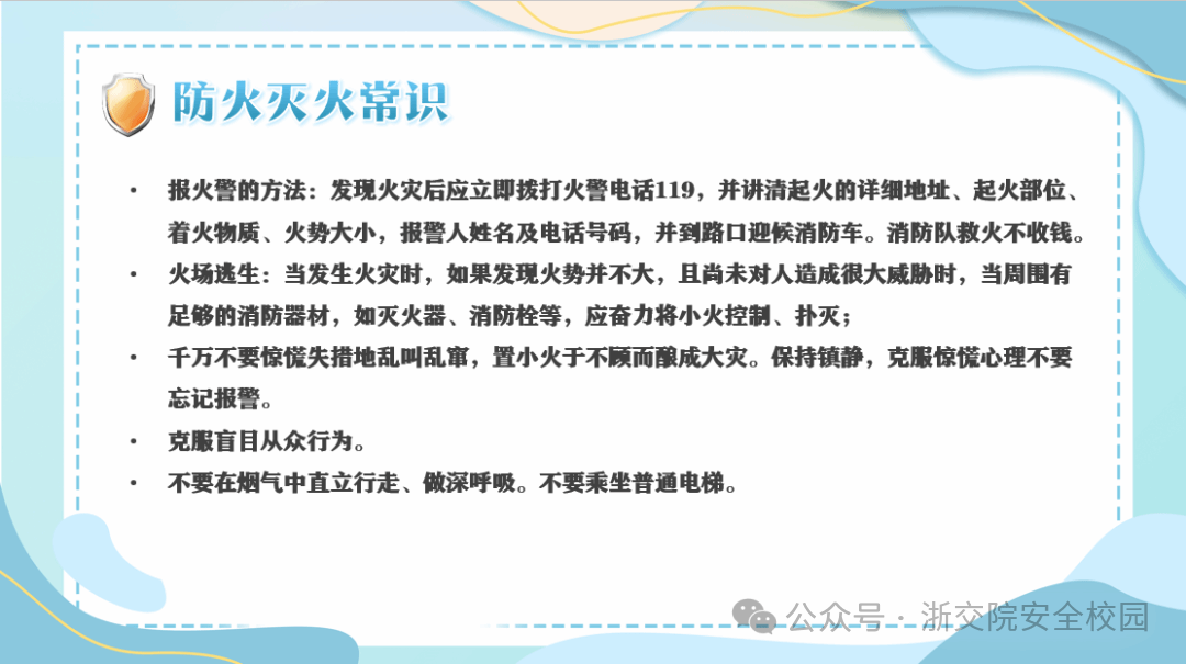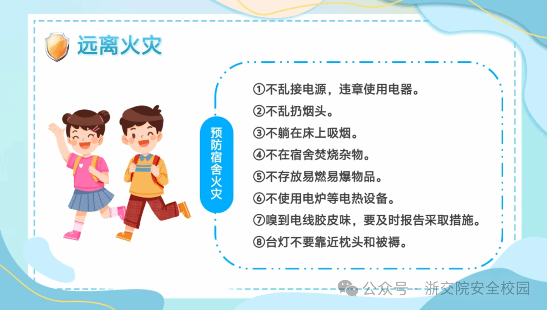 除了个人财产以外,消防也是非常重要的,以下是预防宿舍火灾的注意事项。