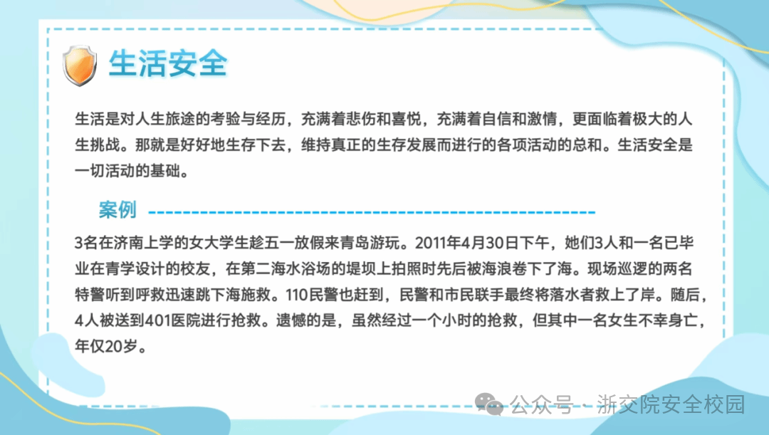 谨慎出游也是我们享受丰富的大学生活的前提。下面是关于生活安全事故的案例。