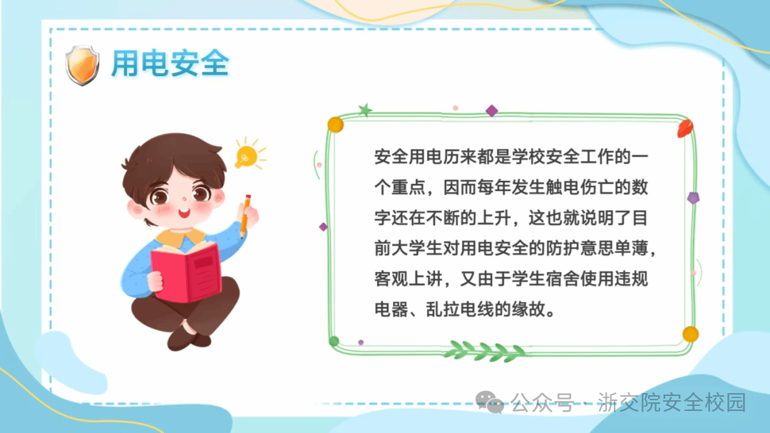 宿舍生活中,用电安全也不可忽视。以下是用电安全注意事项。