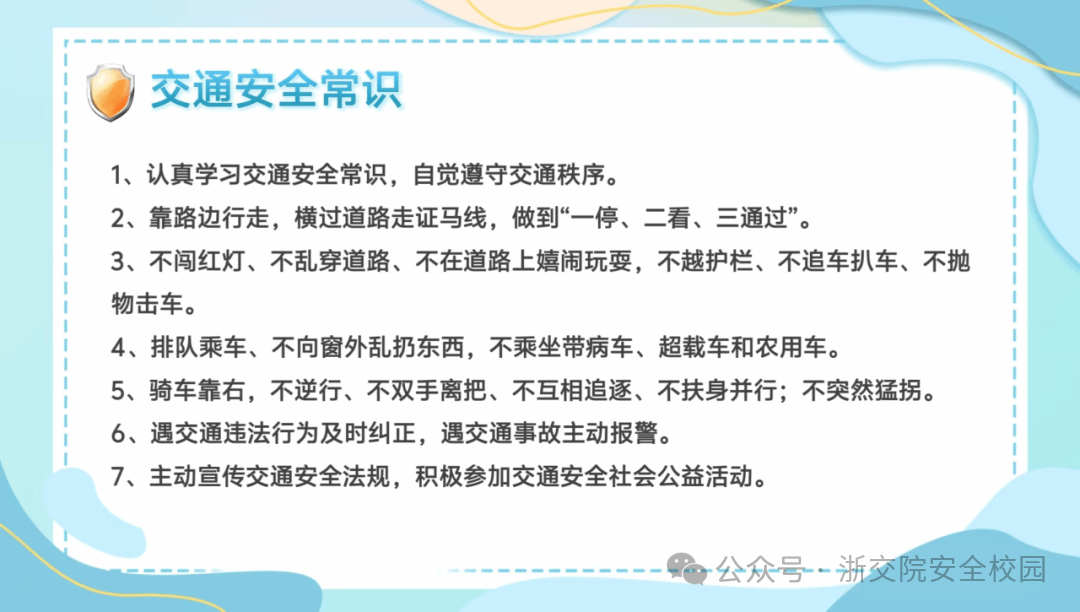 在学校我们也要注意交通安全,在过马路时不要低头看手机。以下是交通安全的注意事项。